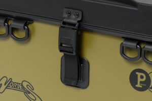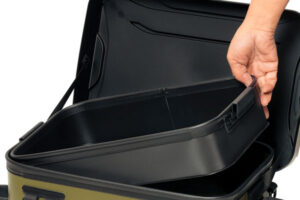 優れた強度と耐久性を備えたトラウト専用タックルバッグです。上部からの均一な圧力で100㎏以上を実現しました。※(実測値であり、保証値ではございません。)専用の取り外し可能なインナーフルトレーが付属しており、上下2段使いすることができルアーの整理や収納に便利です。汎用性の高いDカンを計6個、側面にはロッドスタンドを2個搭載しており、ロッドやルアーの交換が容易におこなえます。ベルトアジャスターで、ベルトの長さを自在に調整できます。フタ裏には角度固定ベルトがあり、バタつきを抑えてフタの角度を微調整できます。また、フタは背面の面ファスナーベルトを開くことで取り外しできるようになっています。